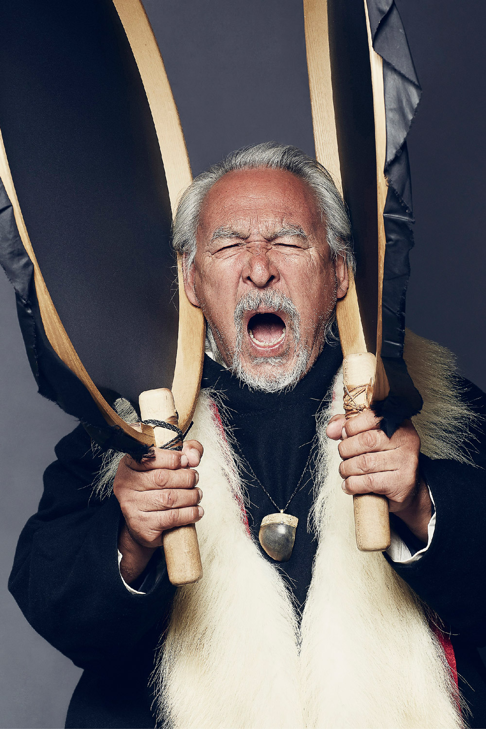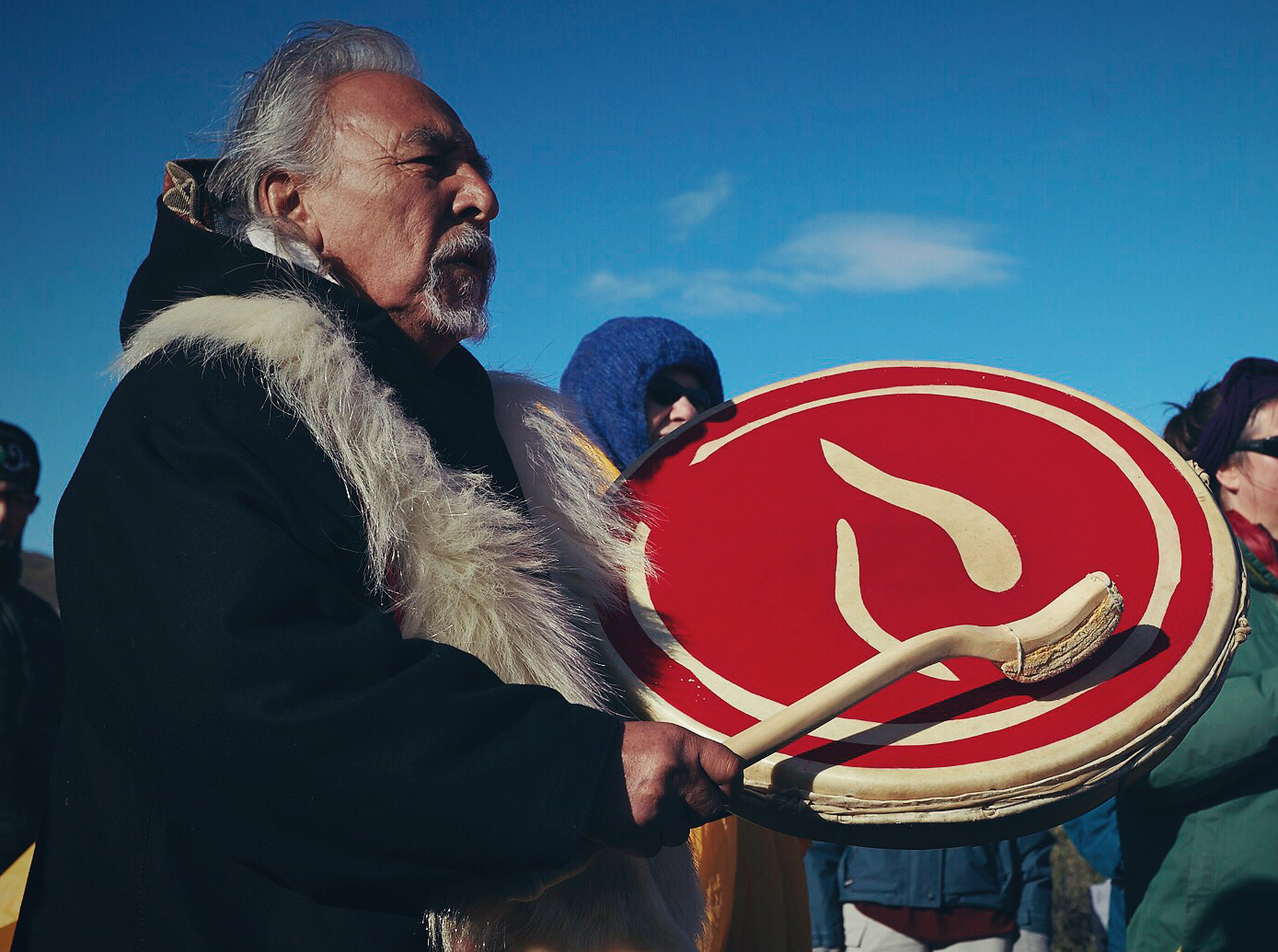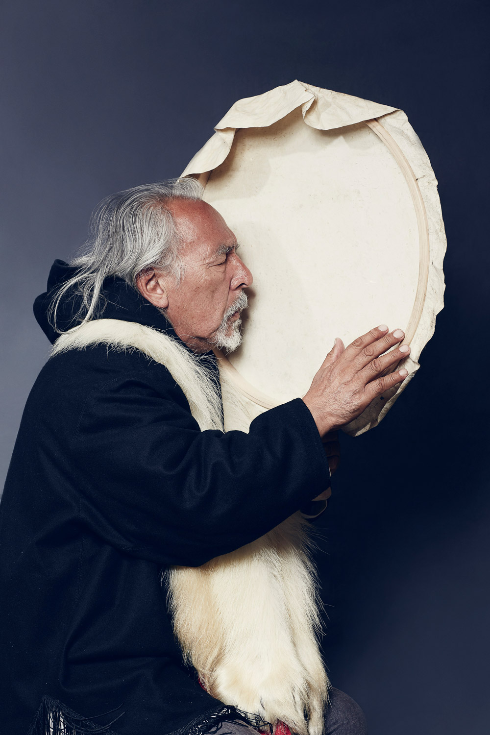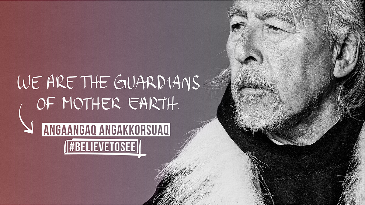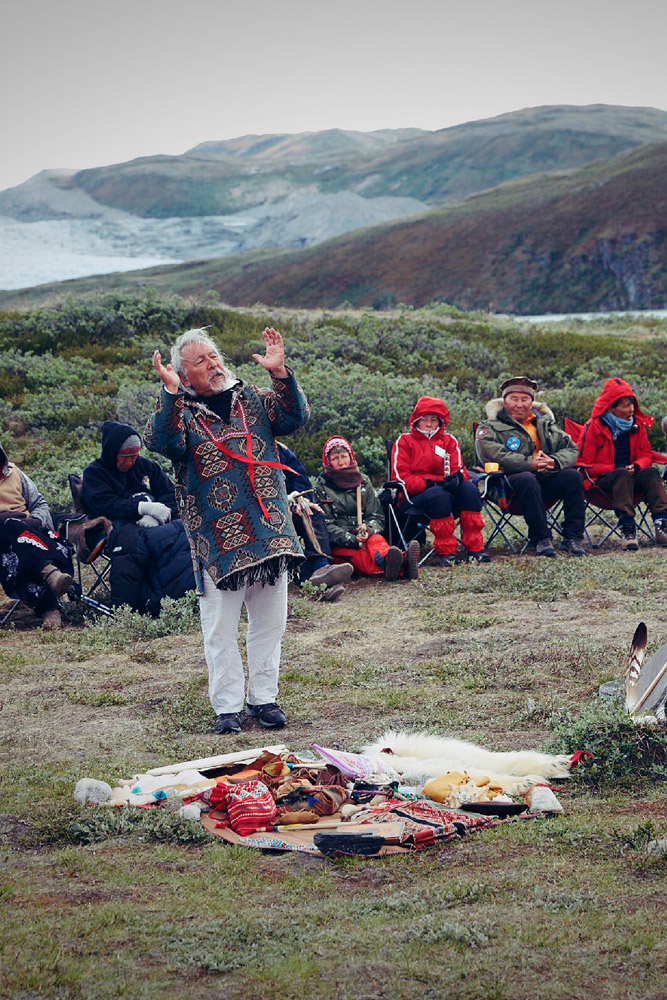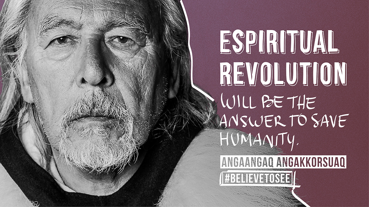 Angaangaq was born in Kalaallit Nunaat (“Greenland” in kalaallisut, the Greenlandic language) on November 2, 1947. He is an Eskimo descendant of a family of traditional healers and shamans. He was elevated to the rank of "Angakkoq” (“Shaman" in Greenlandic) by his people, and is the spiritual chief of the Kalaallit tribes and representative of the Elders of the indigenous at the United Nations. When the ecological crisis and climatic changes took place in his homeland, he received a mission of the Elders: to be their runner, the link between them and the world – both ways. This duty was given to him June 1975. Since then, he has been traveling the world, spreading his message.