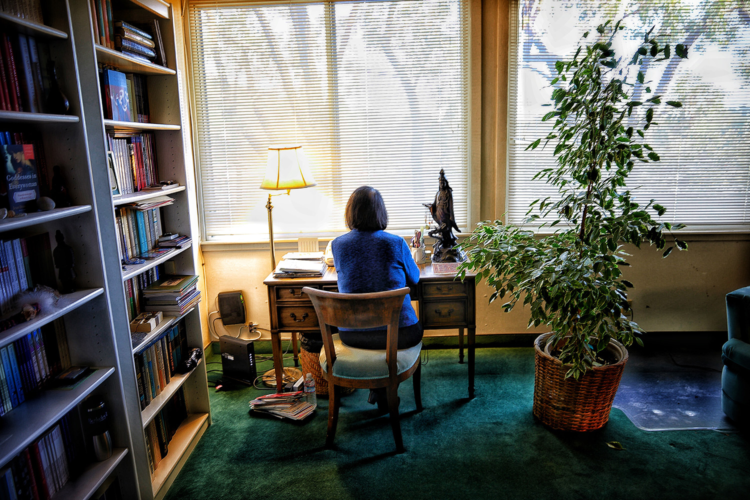 On the peaceful and beautiful woods outside San Francisco, Gaby visits Jean Shinoda Bolen, a Jungian doctor, psychiatrist and analyst. For Jean, even coming from scientific disciplines, it is necessary to "believe" in order to "see", and she has found a gift in listening to people using abstraction and imagination as the predecessor Carl Jung did. In addition to her practice, Jean is a conference speaker and has written books analyzing the psyche of men and women in "archetypes" drawn from the Greek religion and culture. In her studies she has been able to shape a theory about how Greek deities are represented in people's ways of being. Jean lives surrounded by trees and close to natural parks with indigenous ancestors. She says nature and beliefs have been a big part of her career. Gaby photographs her in those places that are important to Jean: in his office, between books and surrounded by ancient trees.