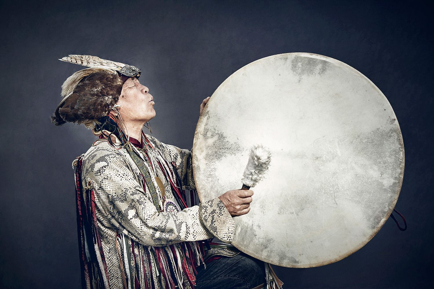 "The Khoomei, in conjunction with the sound of the tambourine, creates a holistic approach, superior to the human being. There are no tricks or illusions but the power of a solid sound. Throat singing allows us to feel the vibration of life with our entire body, to feel the rhythms of the universe, the sound that when transformed into our consciousness expands energy and connects us with the spirits of the celestial energy ".