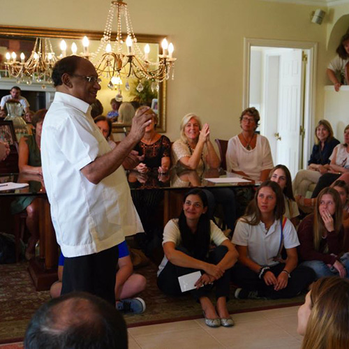 Sri Sri Ravi Shankar was born in Thanjavur, India, on May 13, 1956. At the age of four, he was able recite some verses of the Bhagavad-gītā, the Hindu Holy Book. His first teacher was Sudhakar Chaturvedi, who also collaborated with Mahatma Gandhi. In 1981, after a period of ten days of silence on the banks of the Bhadra River, Ravi conceived the Sudarshan Kriya, a breathing technique that is the cornerstone of the Art of Living courses, the humanitarian organization he created later the same year. The Art of Living carries out activities related to health, education and disaster relief. Currently, the Foundation is located in 155 countries, is as a United Nations non-governmental organization and its volunteer work is one of the largest in the world. In 1997, he co-founded the International Association for Human Values (IAHV), implementing sustainable development projects for the promotion of human values and the coordination of initiatives to resolve military conflicts.